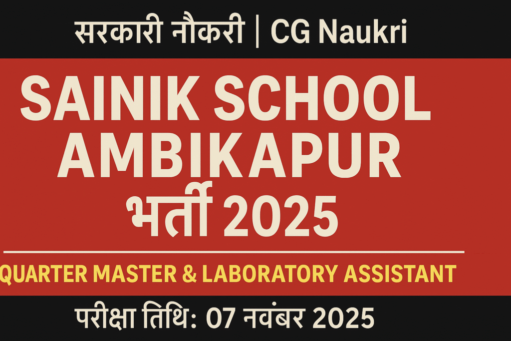 सैनिक स्कूल अंबिकापुर भर्ती 2025 प्रकाशित: (नोटिफिकेशन देखें) | आवेदन का प्रकार: ऑफ़लाइन/ ईमेल #SainikSchool #Ambikapur #Recruitment #QuarterMaster सैनिक स्कूल